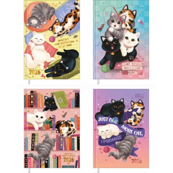 Agenda 2026 Costurada Purrfect Capas Sortidas 10,5 x 14,8cm 176 FL 1 UN Tilibra