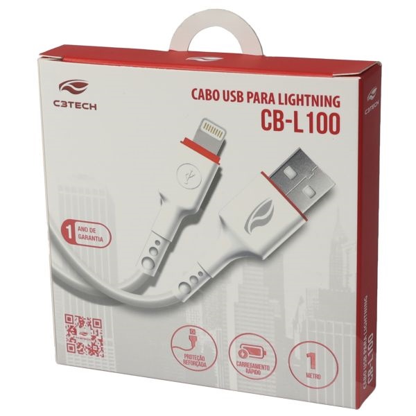 Cabo USB C3Tech Lightning CB-L100WH 1m Branco 1 UN