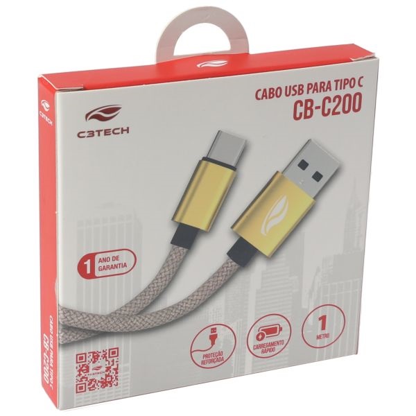 Cabo USB e USB-C C3Tech CB-C200GD 1m Dourado 1 UN