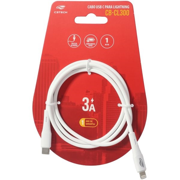 Cabo USB-C C3Tech Lightning CB-CL300WH 1m Branco 1 UN