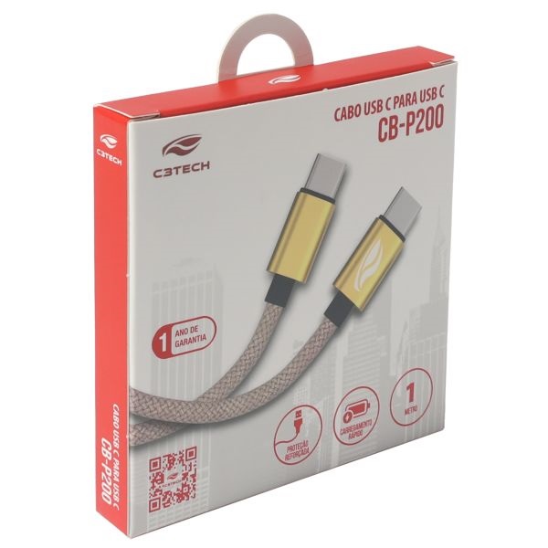 Cabo USB-C para USB-C C3Tech CB-P200GD 1 m Dourado 1 UN