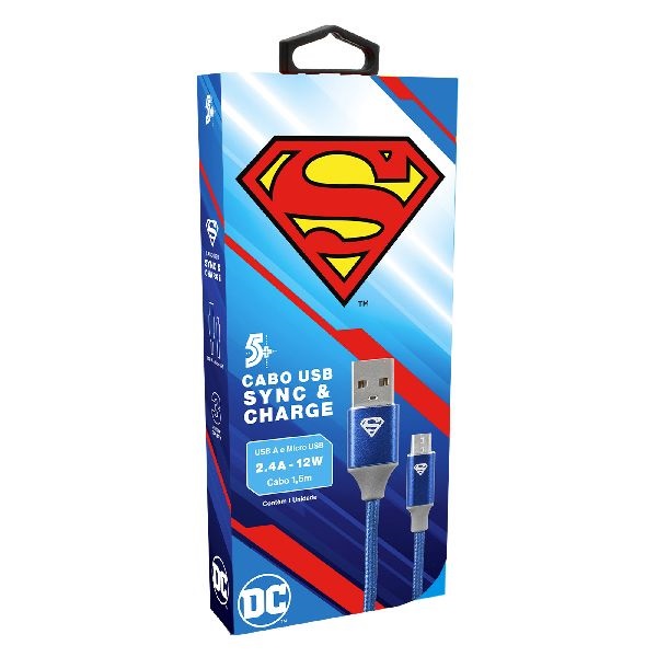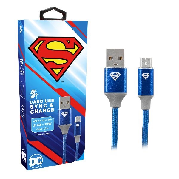 Cabo USB 5+ para Micro USB - 2.0 - 1,5m DC Mobile - Superman 1 UN