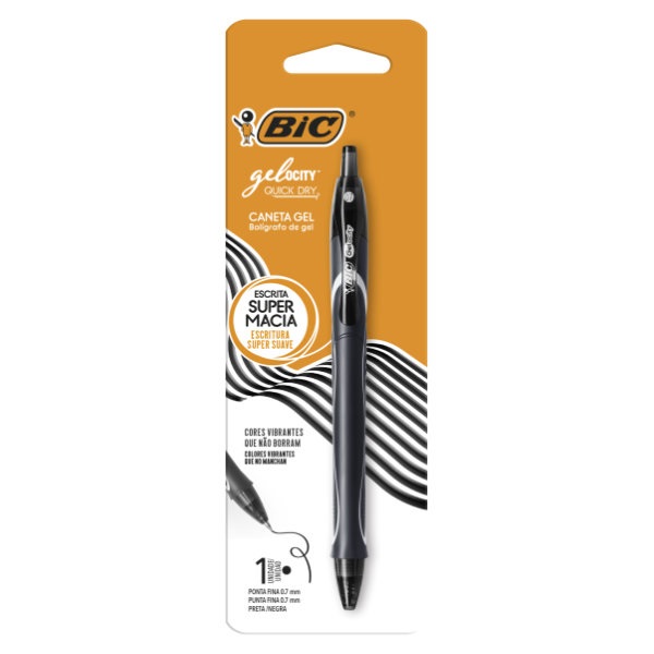 Caneta Gel BIC Retrátil Gelocity Quick Dry 0,7 Preto 1 UN