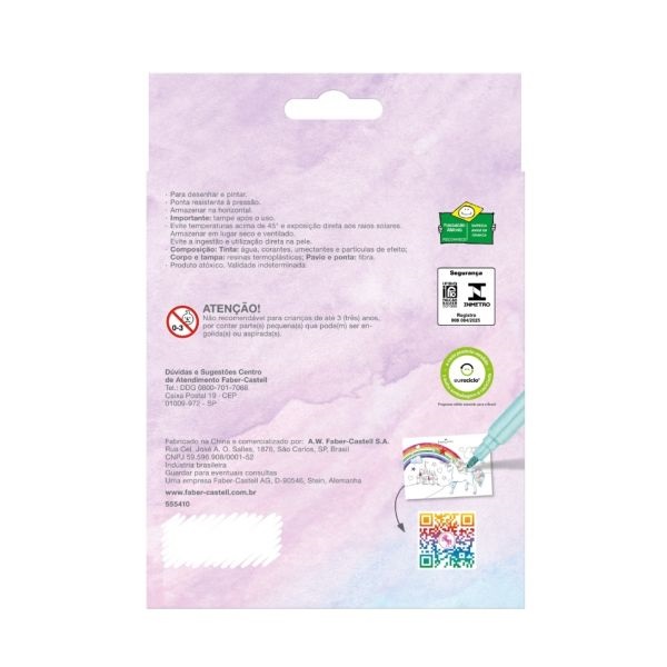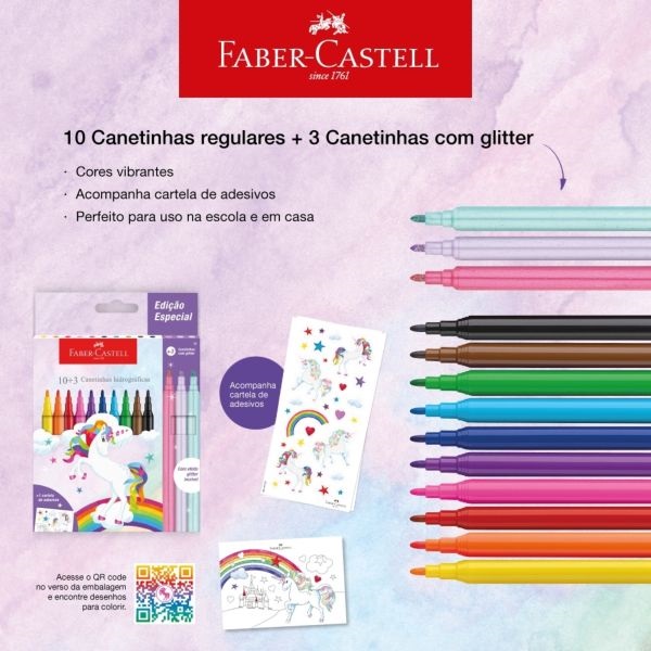 Caneta Hidrográfica Faber Castell Coleção Unicórnio 10 Cores Reguláveis + 3 Cores Metálicas