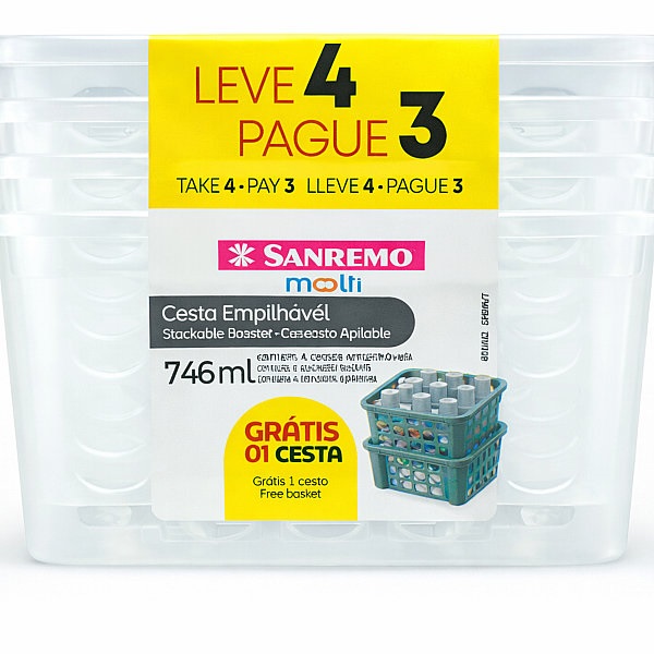 Cesta de Plastico Sanremo Moolti 746ml L4P3 13,5X13,1X9,5cm Transparente 1 UN