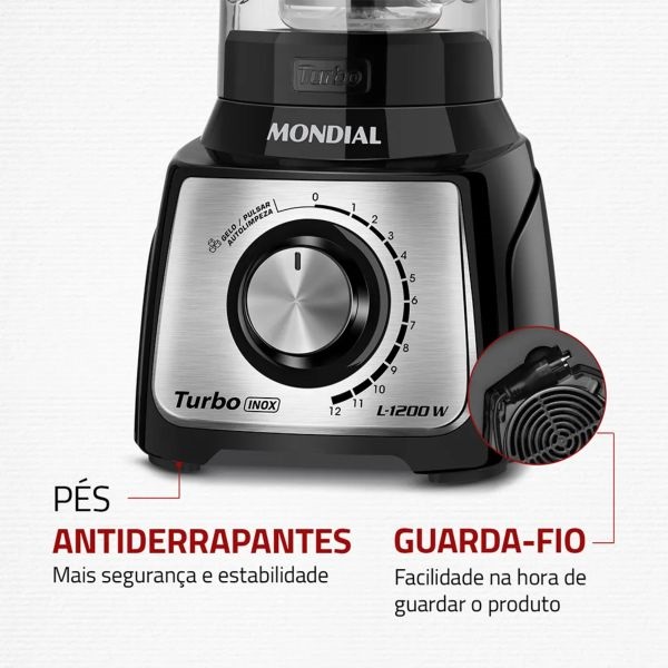 Liquidificador Mondial Turbo Inox L-1200W BI 220V 1 UN