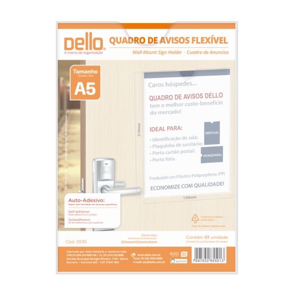 Expositor Display Quadro de Aviso Multiuso A5 150 x 210mm Cristal 0535 1 UN Dello