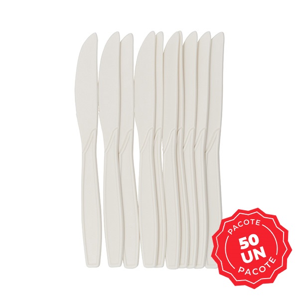 Faca Descartável para Sobremesa Bioplast Pacote com 50 UN Gimba