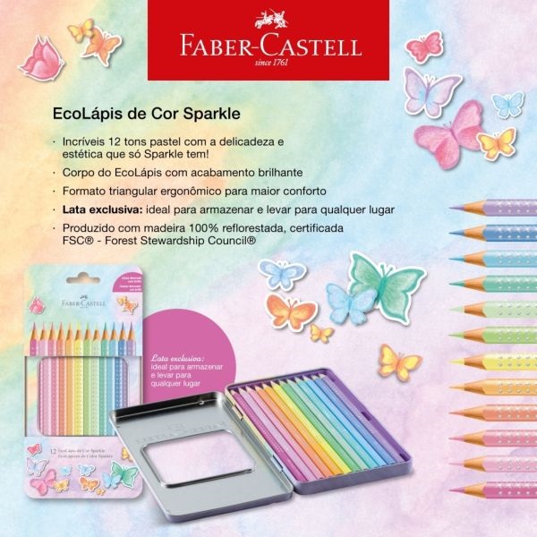 Lápis de Cor Faber Castell Cores Pastel Sparkle 12 Cores