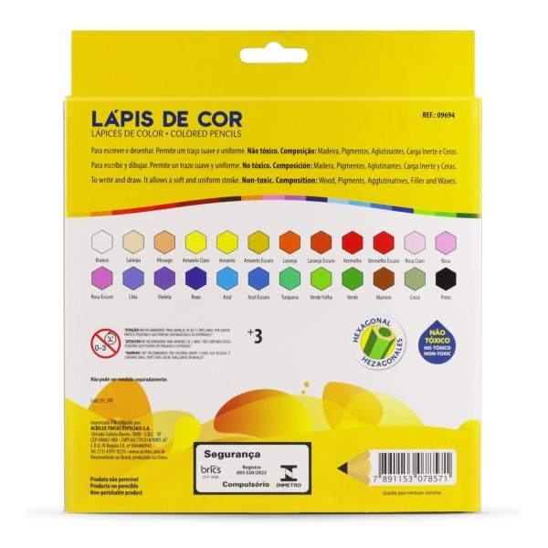 Lápis de Cor Acrilex Hexagonal 24 Cores