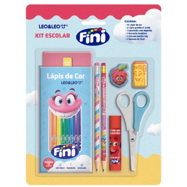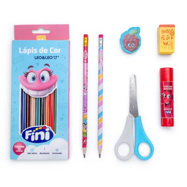 Lápis de Cor Leo&Leo 12 Cores Kit Escolar Fini 1 UN