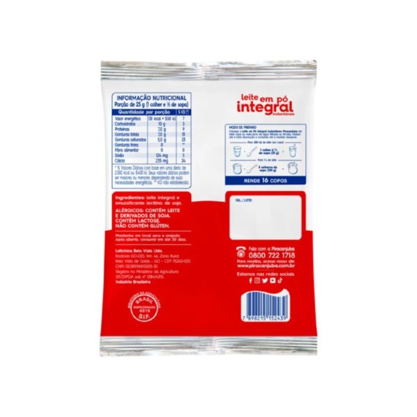 Leite Piracanjuba em Pó Integral Instantâneo 400g 1 UN
