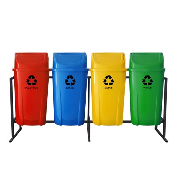 Kit Coleta Seletiva Lar Plásticos com Tampa Basculante 4 Cestos 60L Cada