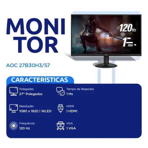 Monitor Gamer AOC 27" 27B30H3/57 Gaming FHD Preto Bivolt 1 UN