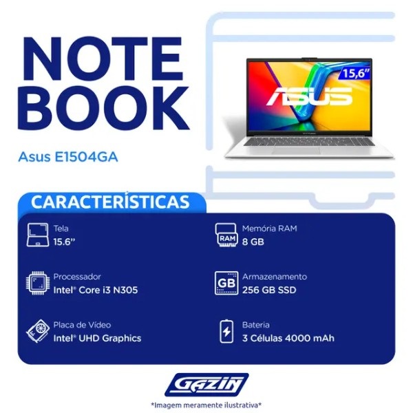 Notebook ASUS 15.6' I3-N305 8GB 256GB W11 Ref:E1504GA-NJ434W Cinza 1 UN