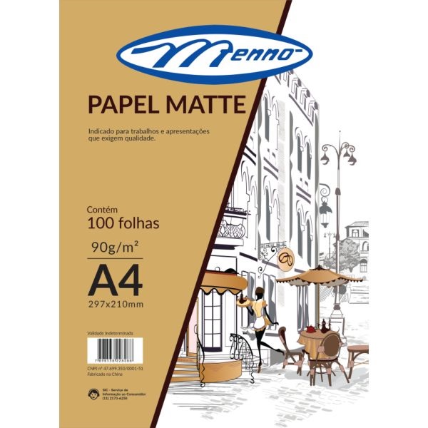 Papel Fotográfico Menno Gráfica Matte Fosco A4 90gr PCT 100 Folhas