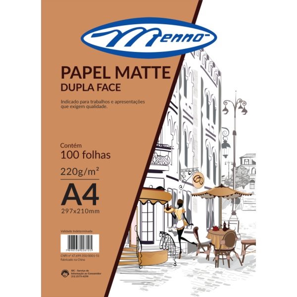 Papel Fotográfico Menno Gráfica Matte Fosco Dupla Face A4 Jato de Tinta 220g PCT 100 Folhas