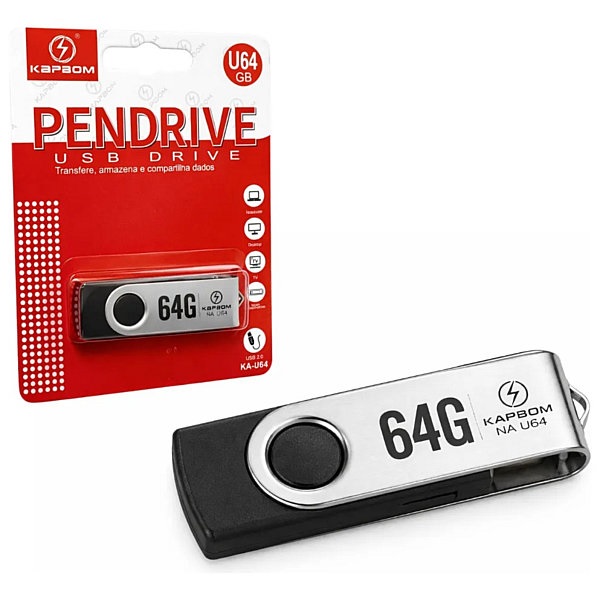 Pen Drive Kapbom 2 em 1 USB 30/Type-C 64GB 1 UN