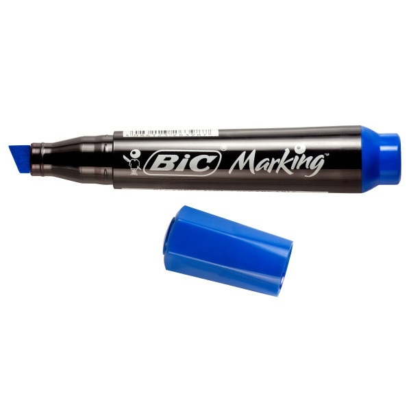 Pincel Marcador Permanente Bic Marking Ponta Chanfrada Azul CX C/12 UN