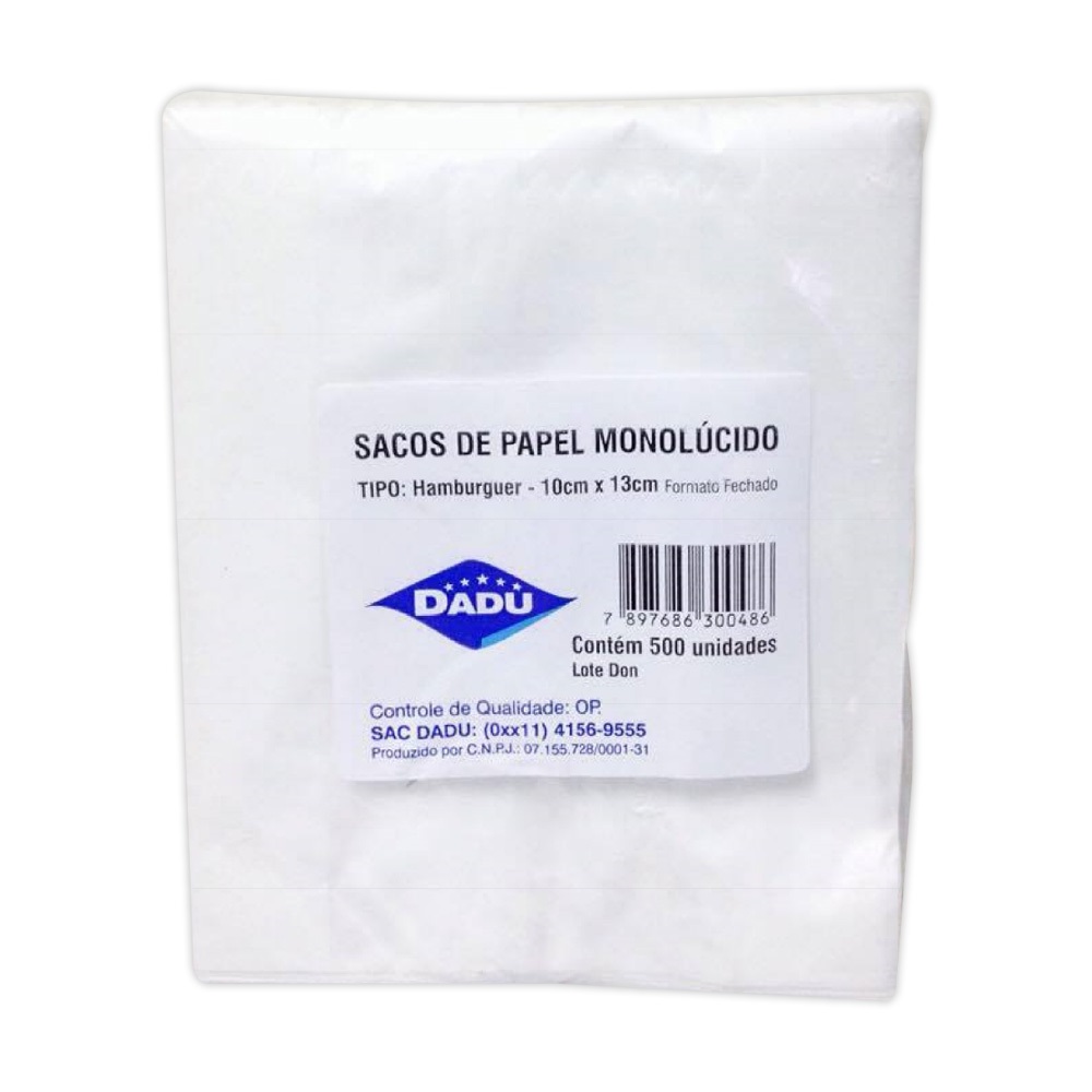 Saco para Hambúrguer Dadupaper Monolúcido 10x13cm PCT C/500 UN