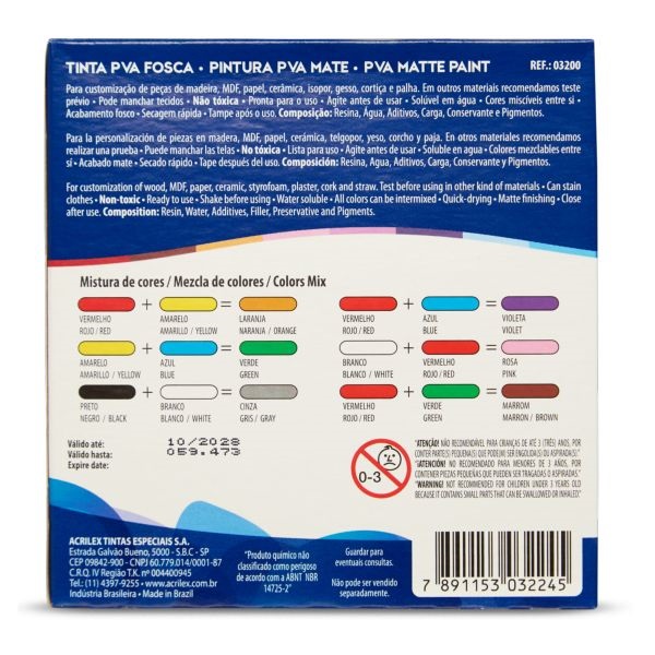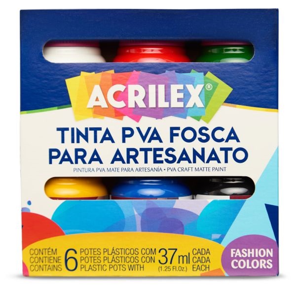 Tinta PVA Acrilex Fosca 37ml 6 Cores