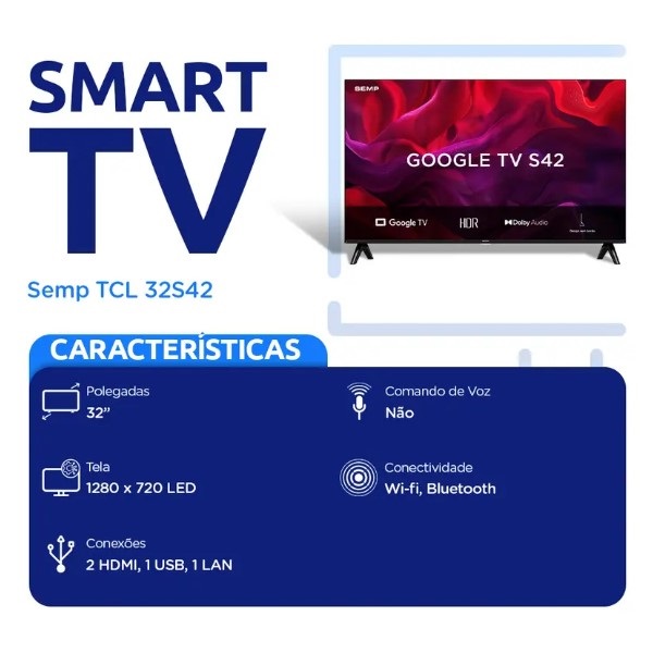 Smart TV Semp Toshiba 32P Led Google TV 32S42 1 UN