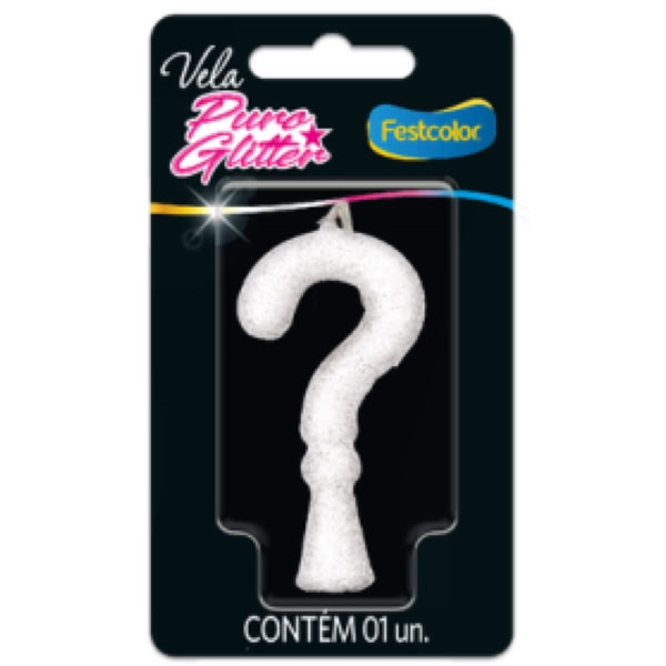 Vela Festcolor Glitter Interrogação Branca 1 UN